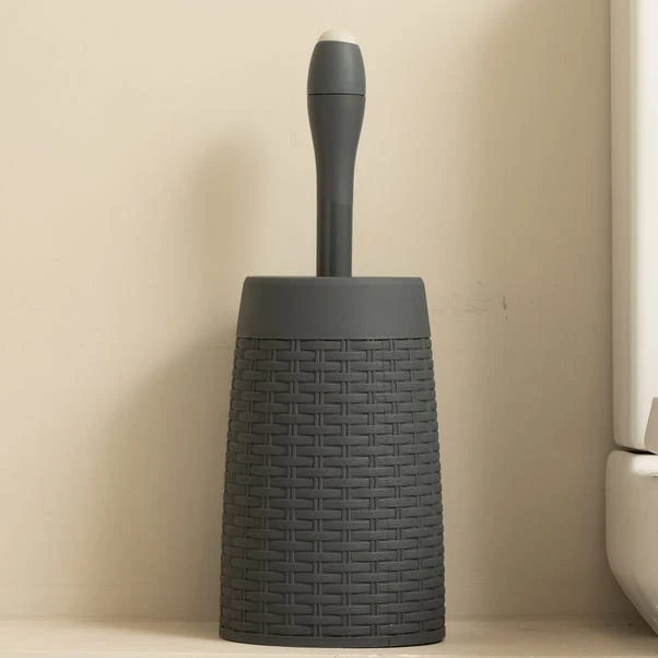Practically designed with a built in disinfectant dispenser, this charcoal grey toilet brush features durable bristles and a rattan effect holder.