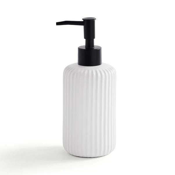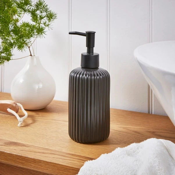 The Ribbed soap Dispenser is a stylish addition to any bathroom. With a ribbed design, the bottle has a modern feel and would be great for storing body or hand soaps or even household cleaning liquids. The sturdy pump will keep your product fresh as you decide when you need it!