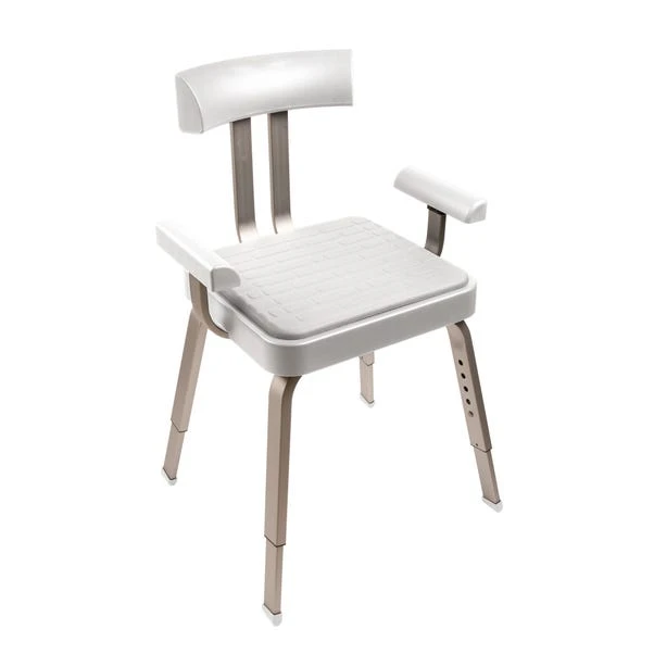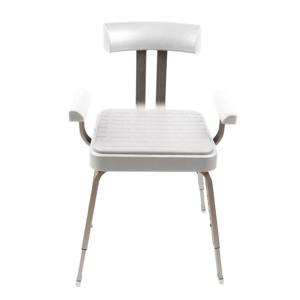 Enhance your bathroom with the Serenity White Shower Chair. Designed to seamlessly blend with your existing décor, this contemporary accessory provides extra stability and independence in the shower. Featuring a curved padded backrest and soft cushioned seat, it offers luxurious comfort and assistance. Its non-slip TPR feet ensure grip on wet surfaces, while the anti-microbial treatment maximizes resistance against germs and bacteria. With convenient armrests and easy-to-clean features, this shower chair is ideal for users up to 113kg/250lbs/17st 12lbs.