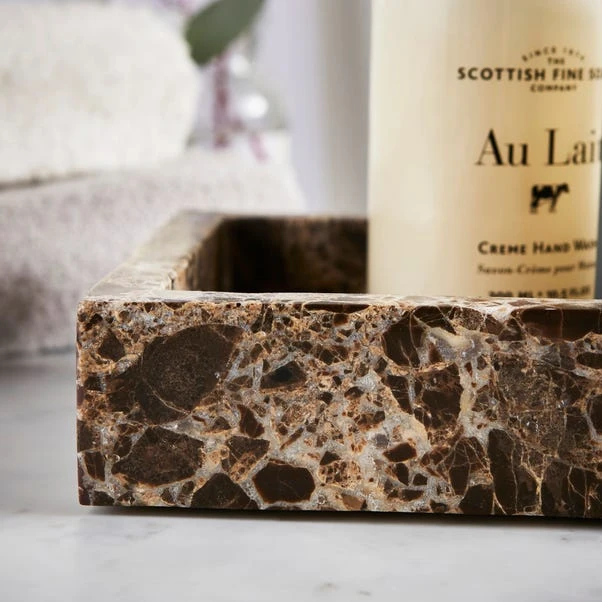 From the exclusive Dorma range, this bathroom tray is unique in design. It is hand-crafted from natural marble making each item one of a kind due to the marble’s geological colour and texture variation. Its sturdy design makes it long-lasting and durable. Coordinating items are available.