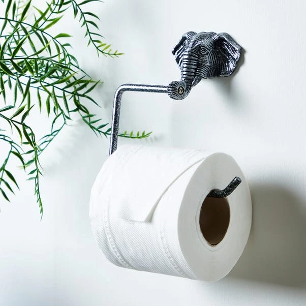 Sculpted into an elephant, this toilet roll holder is made from zinc alloy and iron and has an antique silver finish. Make your bathroom more stylish together with the matching towel ring and hook in the same story.