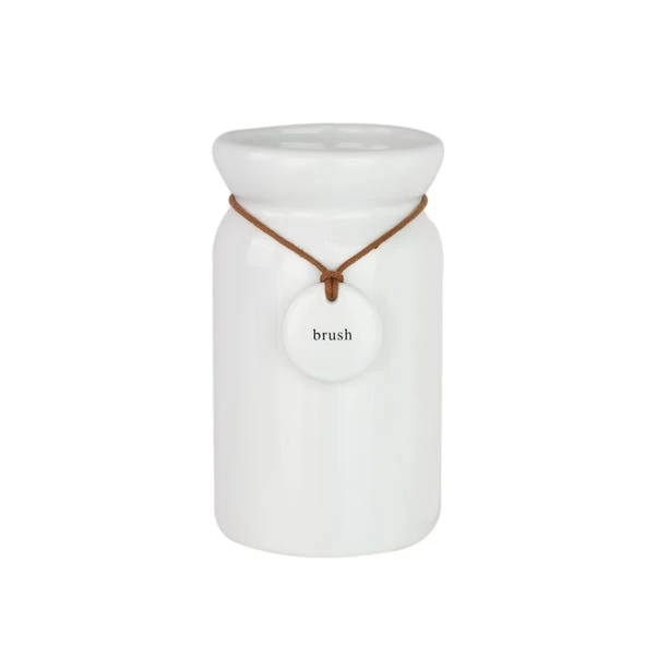 Crafted from durable white ceramic, this bathroom tumbler features a glossy finish and a hanging tag trim.