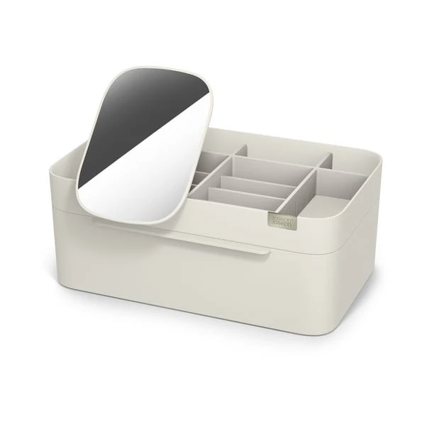 Keep all your daily cosmetics in one place with this convenient organiser designed with a removable mirror. It features three different sized compartments such as deep ones, shallow ones and a magnetic drawer. To easily clean, this cosmetic organiser dismantles easily.