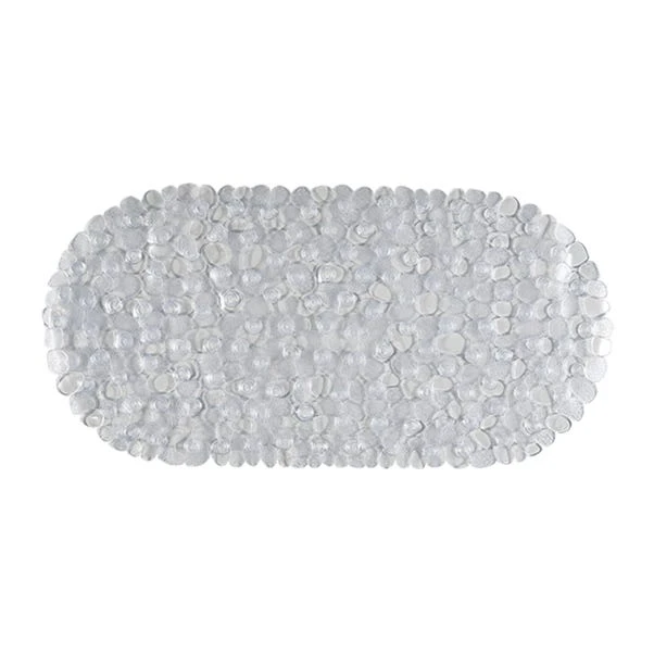 Enhance bath time safety with the Pebbles Bath Mat. Crafted from cushioned PVC, it offers exceptional comfort underfoot while ensuring a secure grip with its suction cup lining. The clear design complements any bathroom style, and additional sizes and colors are available for added customization.
