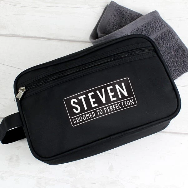 This Personalised Free Text Black Toiletry Bag is a sleek and practical addition to any bathroom. Personalise it with a name and an additional line of text to create a unique and useful gift. The bag’s sturdy design and zip-up compartments make it ideal for travel or daily use, keeping all essentials neatly organised.