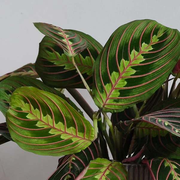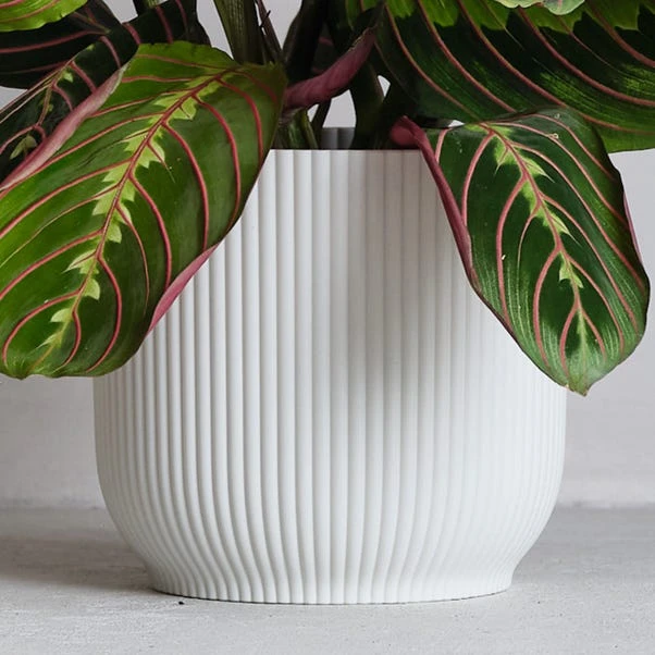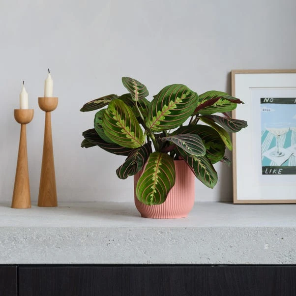 This distinctive plant earned its name because of the way its leaves fold together at night, almost like hands closed together in prayer. Instantly recognisable for its stunning green leaves with red veins and beautiful, contrasting pink undersides. The Prayer Plant is a member of the Calathea family, but it’s incredibly easy to care for. Paired with a perfectly-fitting, Elho pot made from recycled plastic.