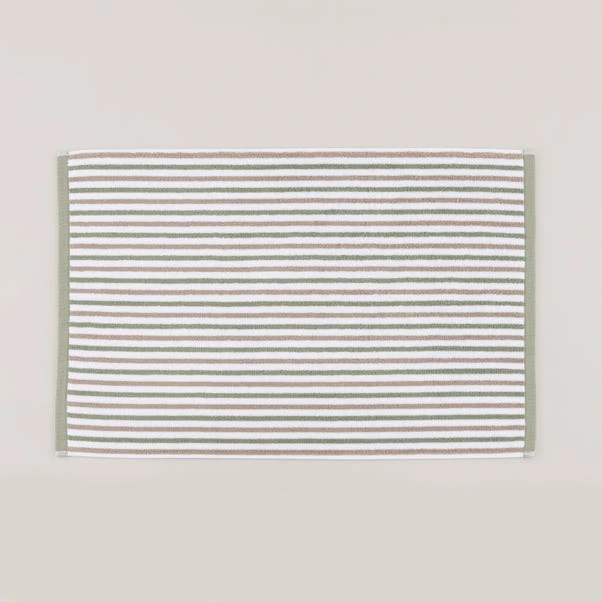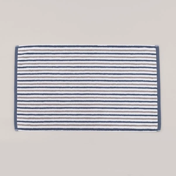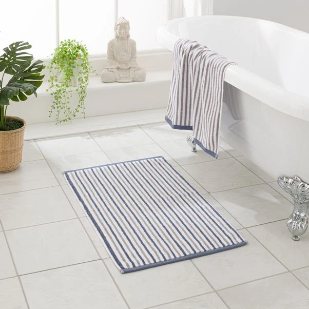 Sporting a coastal influenced striped design, this stylish bath mat is perfect to add a sense of nautical fun to your bathtime. Coordinate with the Reversible Stripe towels or our colour matching Egyptian towel range to create your unique style. Crafted from 100% Cotton this bathmat is very absorbent and machine washable making caring for this item a breeze!