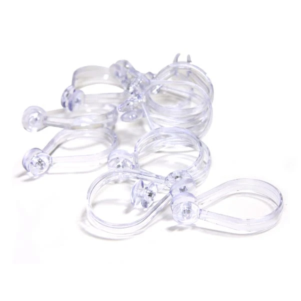Practical and stylish, our Shower Curtain Button Hooks come in a pack of twelve and are a bathroom essential. The hooks will fit on to most shower curtains and rails, and the clear design will go well with most shower curtain designs. Easy to attach to your shower rail and curtain these stylish curtain rings will make a great addition to your bathroom.