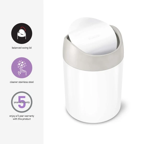 This mini can bin is perfect for desktop use or in a smaller space. It has a 1.5 litre capacity and a weighted swing lid. Great for cosmetics pads or smaller items, this bin is a sleek solution to keep things tidy in your bathroom or dressing area. Available in a choice of colours to suit your decor, it comes with a 5 year warranty for peace of mind.
