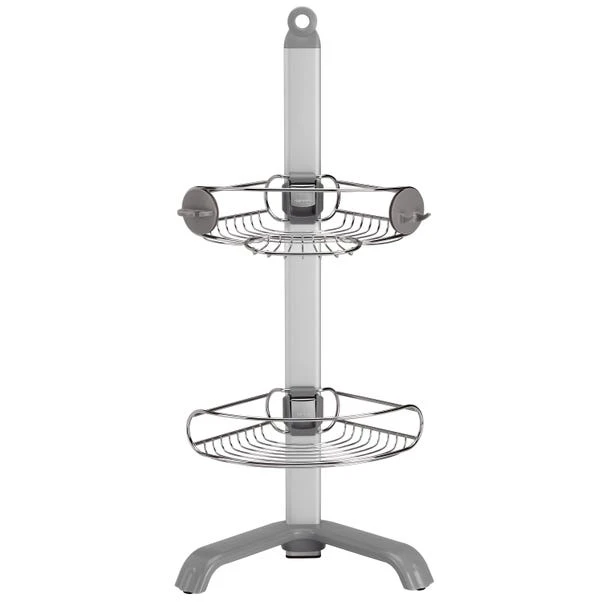 This simplehuman shower caddy is crafted from aluminium and steel and features two adjustable tiers and a hook providing convenient bathroom storage.