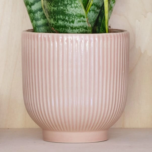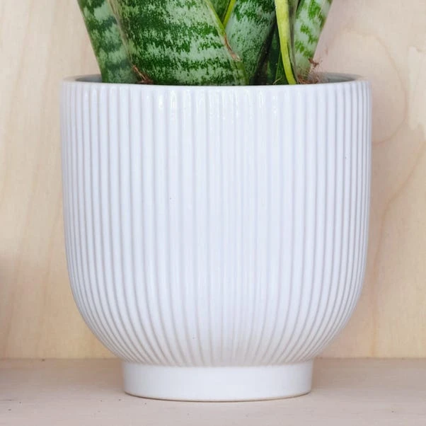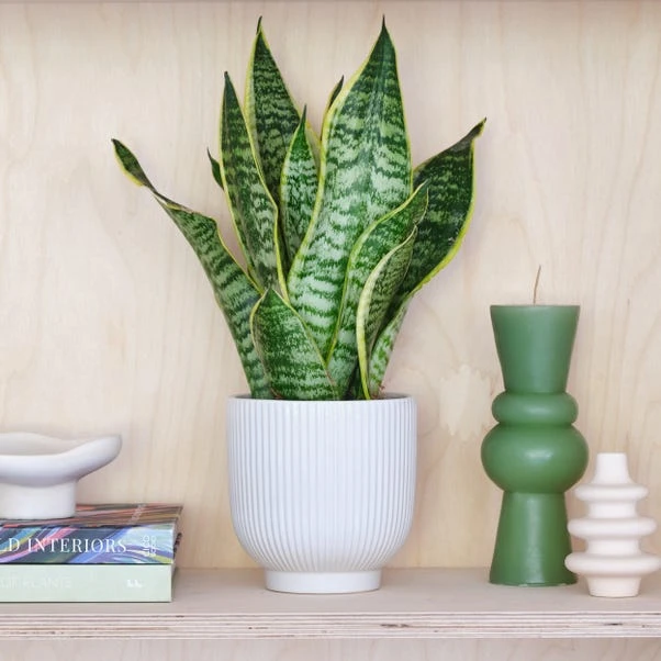 A very hardy and low maintenance houseplant, the Snake Plant is very tolerant of any accidental neglect! According to studies, it’s one of the best plants for improving air quality, removing toxins from the air in your home. With its distinctive long, upright leaves with contrasting yellow edges, the Snake is one stylish plant! Variegation on its leaves may vary. Paired with a ribbed, perfectly-fitting ceramic pot.