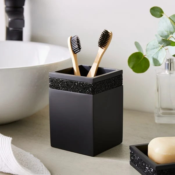 Keep your toothbrush tidy in style with this Sparkle Black Toothbrush Holder, featuring a subtle sparkle design and geometric square shape. This is a great addition to a modern style bathroom, and matching items are available to create a coordinated look.