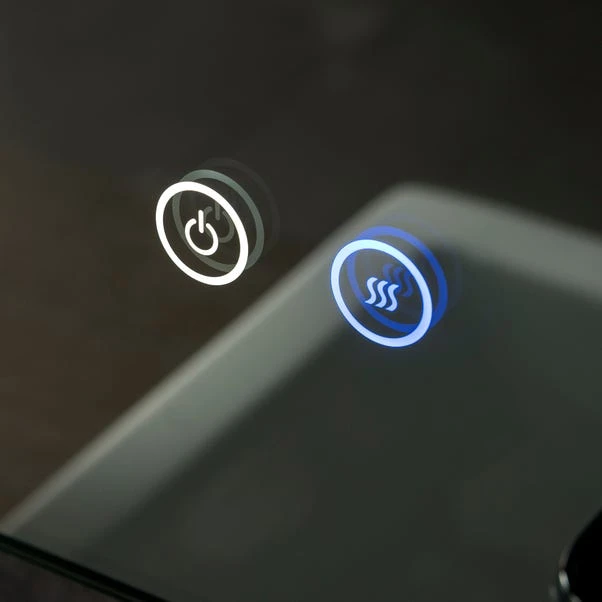 This illuminated LED electric wall mirror is a sophisticated addition to any home. Featuring touch button functionality and two-tone lighting, filling your room with either bright or warm light. Click bracket hanging mechanism and hardware included. Installation required by a qualified electrician.This product is IP44 rated and CE certified.