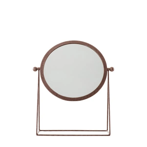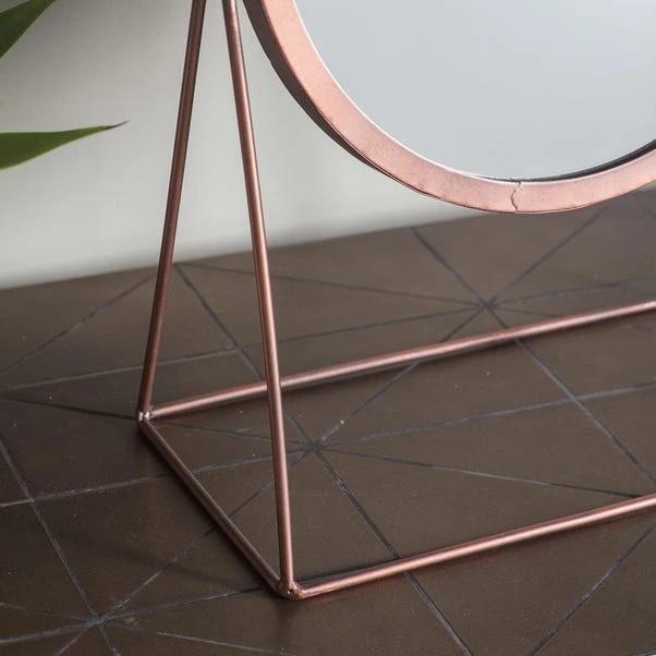 This contemporary table top mirror with adjustable angle is perfect for adding an industrial touch to your home. Finished with a copper frame, this round mirror is ideal as a final touch to any dressing table or console.