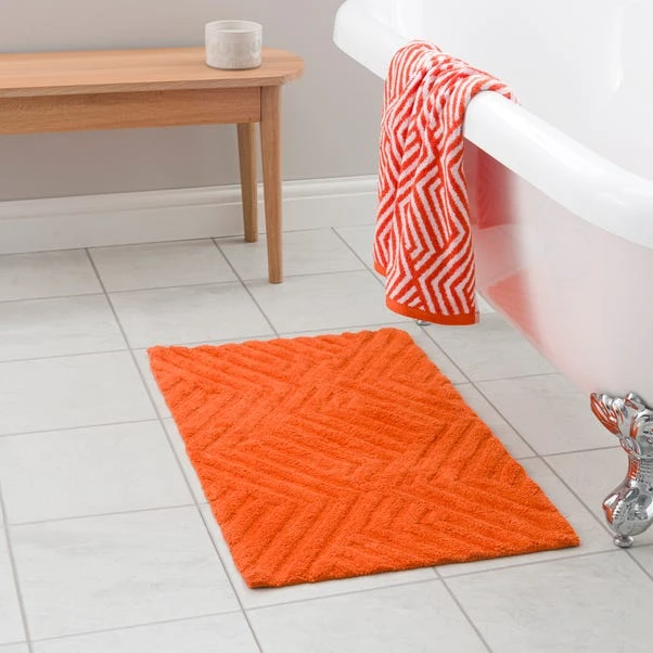 This super soft anti-slip bath mat is 1300 GSM for a comfortable, soft feel. The embossed geometric design is formed with a tufted finish, adding texture and modern style to your bathroom. Available in a choice of colours, this bath mat will bring warmth and a luxurious flair to your daily routine.